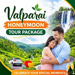 Celebrate your special moments in the peaceful hills of Valparai. Our honeymoon tour package offers romantic scenic views, comfortable travel, and unforgettable experiences for couples.